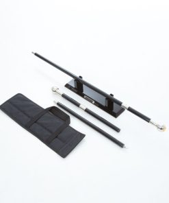 - 2 piece Ebonised (Black Lacquered) Hardwood Shaft (the 2 pieces simply screw together using a hidden screw joint in the middle of the Cane, see images above)