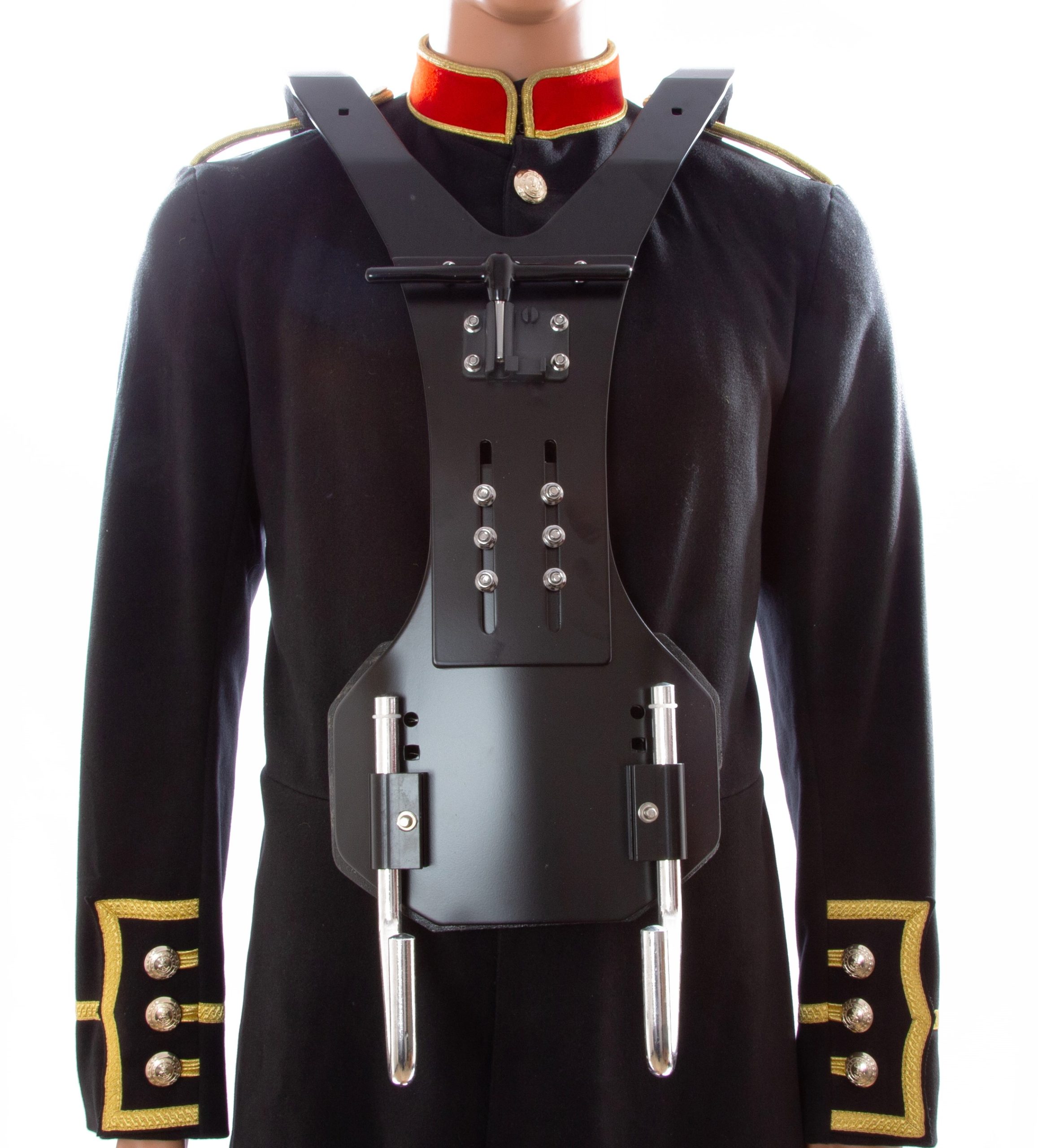 2 piece Aluminium, Black Vest style Snare Drum Carrier with foam padding