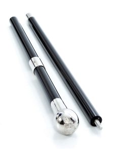 - 2 piece Ebonised (Black Lacquered) Hardwood Shaft (the 2 pieces simply screw together using a hidden screw joint in the middle of the Cane)