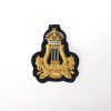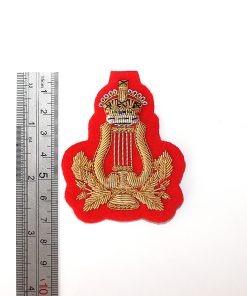 Musicians Lyre Badge with Kings Crown. Hand Embroidered, Gold on Red