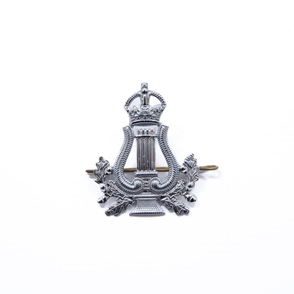 Chrome finish ‘Musicians Lyre’ Badge with Kings Crown