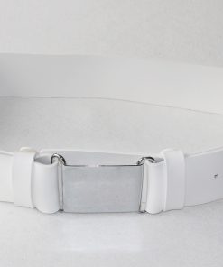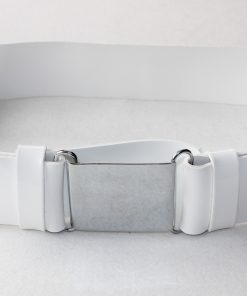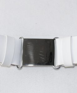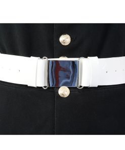White Matt PVC Parade Belt, 57mm Width (2 1/4″), complete with Chrome finish Plain Plate Buckle & 2 x Chrome finish Side Buckles