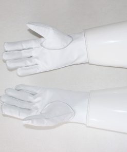 Our Drum Majors Gauntlet Gloves have a much whiter leather Glove part than the previous style. The Hand sizes are also a little bit bigger than the previous option.